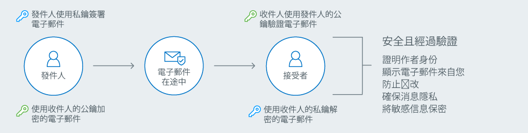 在許多組織中,電子郵件是最薄弱的安全環節。與網站和銀行交易一樣,電子郵件資料在寄件者和收件者之間的傳遞也需要受到保護。PKI憑證提供了一種經過驗證的加密和身分驗證解決方案,不僅可以保護電子郵件的內容,還可以內嵌寄件者的身分。